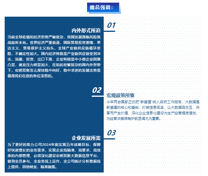 ? ? ? ?會(huì)上,魏總對(duì)項(xiàng)目平穩(wěn)運(yùn)行表示了肯定,他表示,經(jīng)過9個(gè)多月的艱苦奮戰(zhàn),宏明雙新信息化建設(shè)初見成效,無論是企業(yè)自身業(yè)務(wù)、流程管控、還是系統(tǒng)運(yùn)作模式總體來說優(yōu)化了不少、進(jìn)步了不少、數(shù)據(jù)及時(shí)性與準(zhǔn)確性提高了不少,經(jīng)過大家的共同努力,實(shí)現(xiàn)了按自然月關(guān)賬,次月一號(hào)結(jié)賬出具報(bào)表。這場(chǎng)勝利來自于項(xiàng)目參與人員披星戴月的辛勤付出,來自于宏明人百折不撓的精神支撐。
