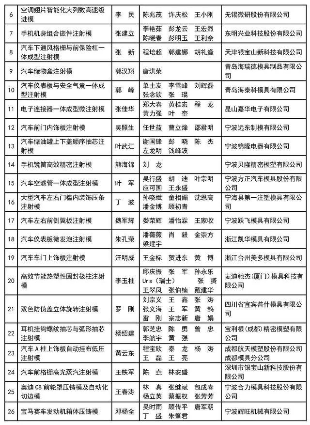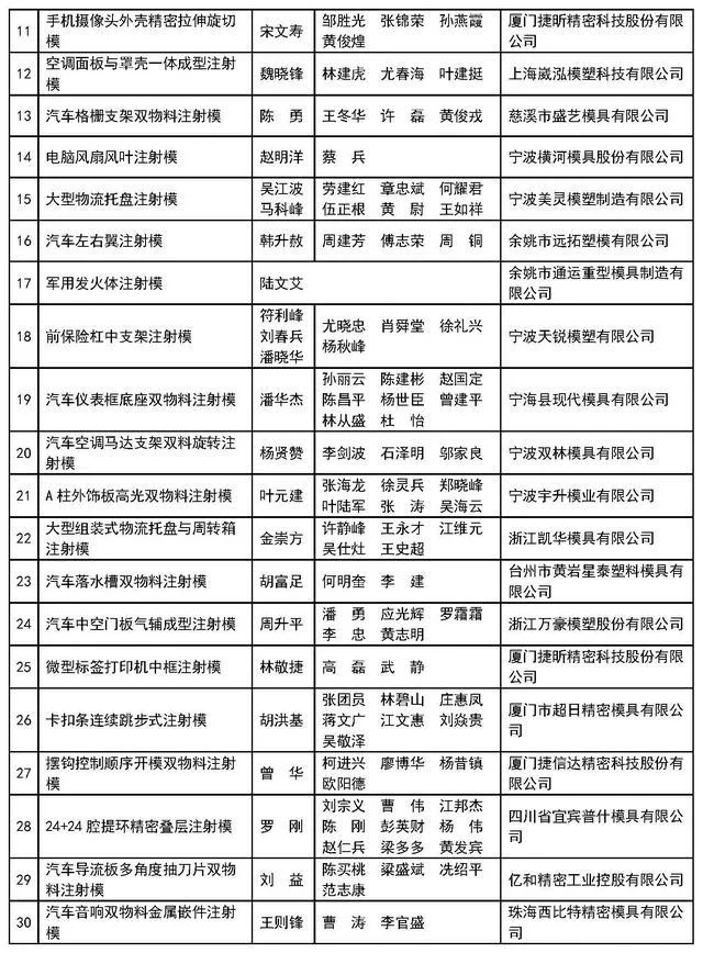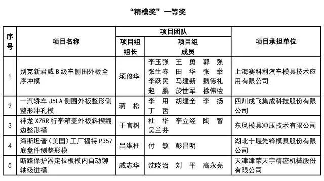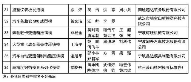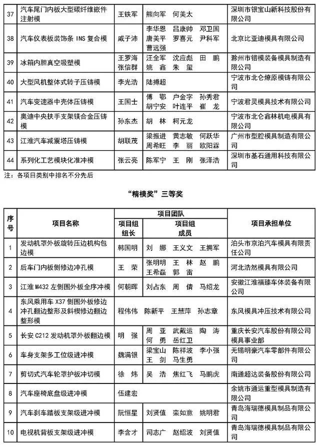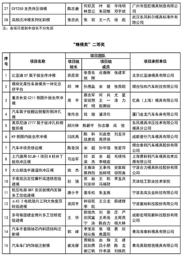 2016~2018年度“精模獎(jiǎng)”評(píng)定結(jié)果如下: