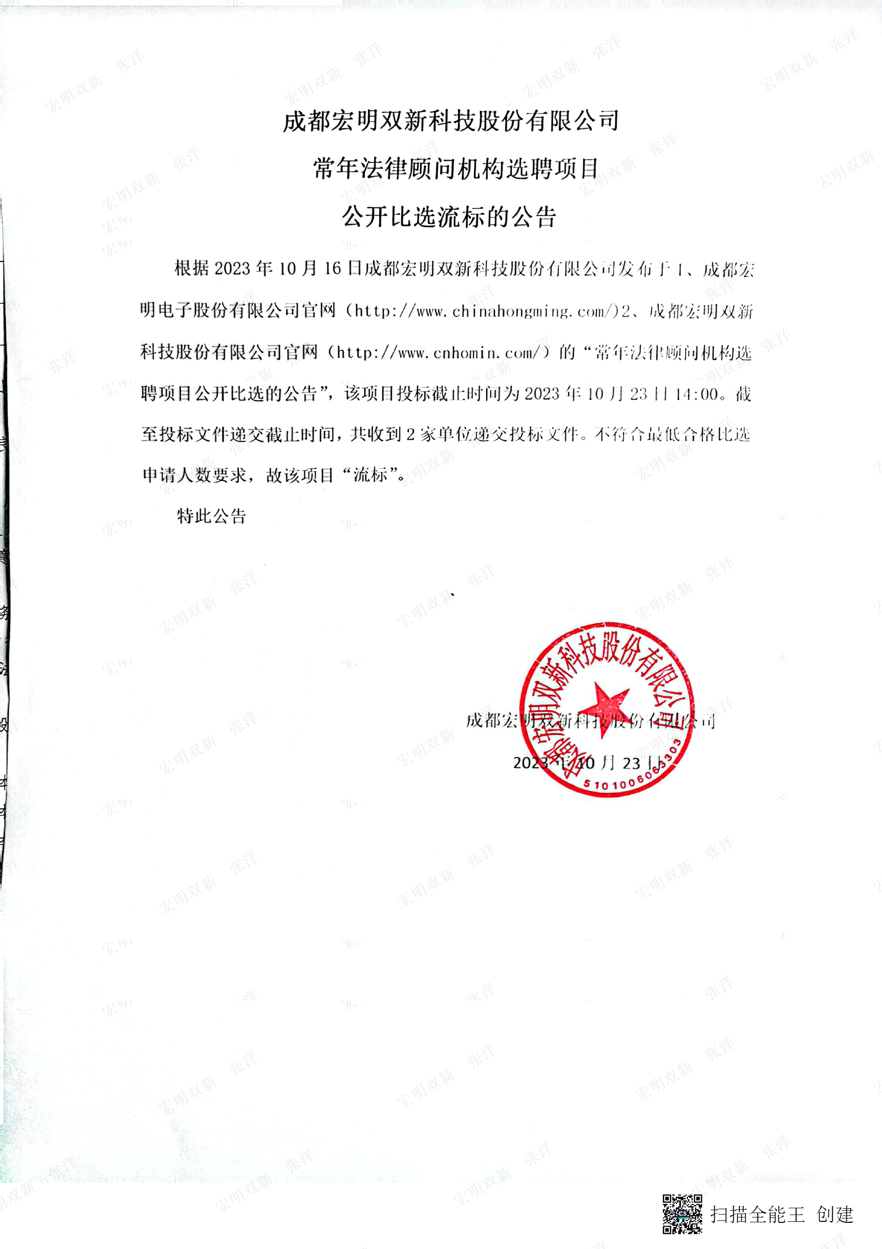 上一條:成都宏明雙新科技股份有限公司 常年法律顧問(wèn)機(jī)構(gòu)選聘項(xiàng)目(第二次) 公開(kāi)比選公告