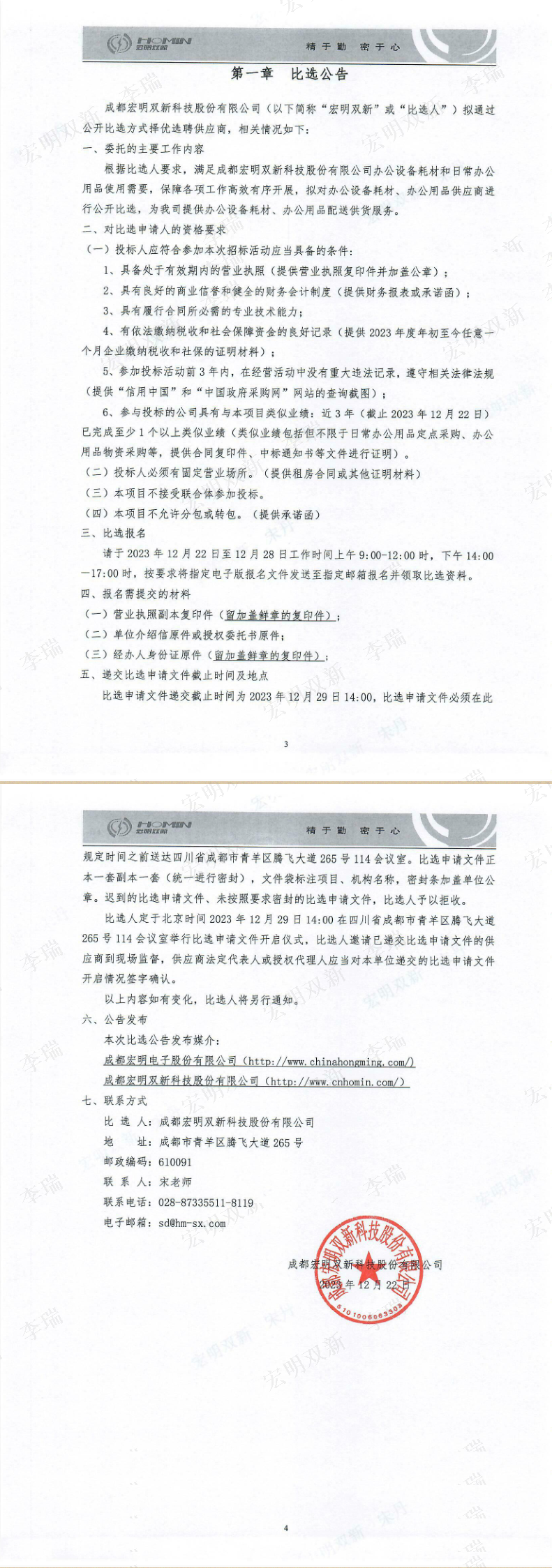 上一條:成都宏明雙新科技股份有限公司辦公物資供應(yīng)商選聘項(xiàng)目結(jié)果公示