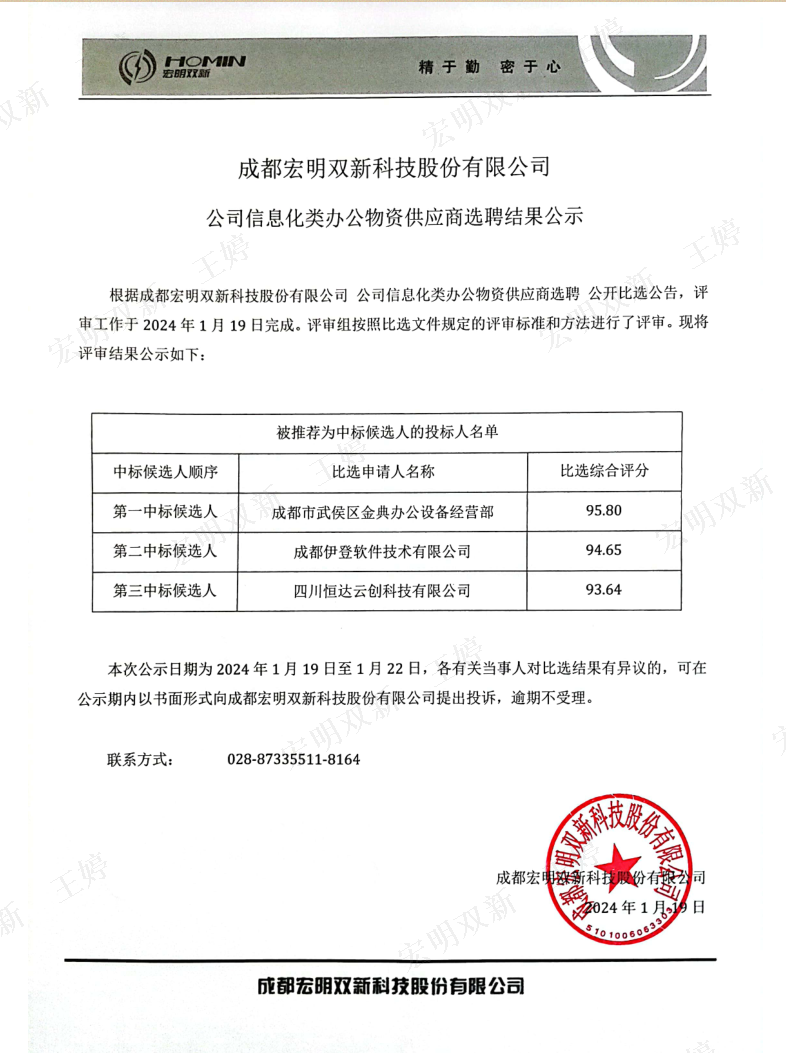 上一條:成都宏明雙新科技股份有限公司 2024年政府項目代理申報委托服務(wù)機(jī)構(gòu)選聘項目(第二次)公開比選公告